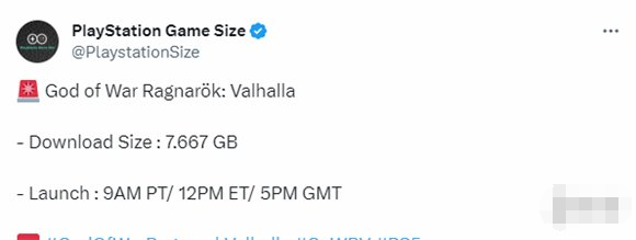 《战神5(God of War™ Ragnarök)》免费DLC“英灵殿”将于明天凌晨1点(北京时间)正式上线。今日,外国博主PlayStation Game Size提前透露了DLC“英灵殿”的更新大小,其容量约为7.667 GB,更新版本号为05.001.000,玩家可以提前预留下载的空间。