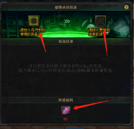 2、然后把想要改成增幅的装备转移过去,用一次性继承器或者诺顿npc处都可以继承。